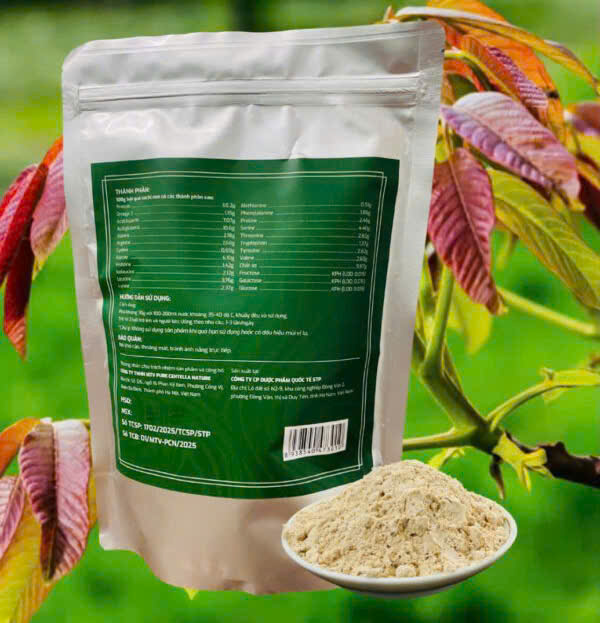 Thành phần:Trong 100g có chứa : Bột hạt Shachi non 99.9%, Vitamin B1:1mg, Vitamin B6: 1mg, Hương liệu tổng hợp ( hương việt quất).